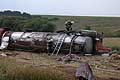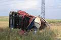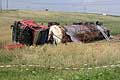 převrácený kamion – únik nebezpečné látky.